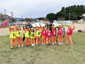 10月22日にサッカー教室があり、5歳児さくら組・4歳児もも組の園児が参加しました。少しずつボールに…