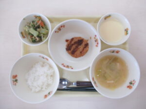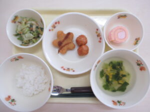 ごはん 星のコロッケ ミートボール ごま和え コンソメスープ ケーキ