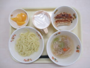 たんぽぽぐみリクエストメニュー けんちんうどん から揚げ フライドポテト フルーツゼリー