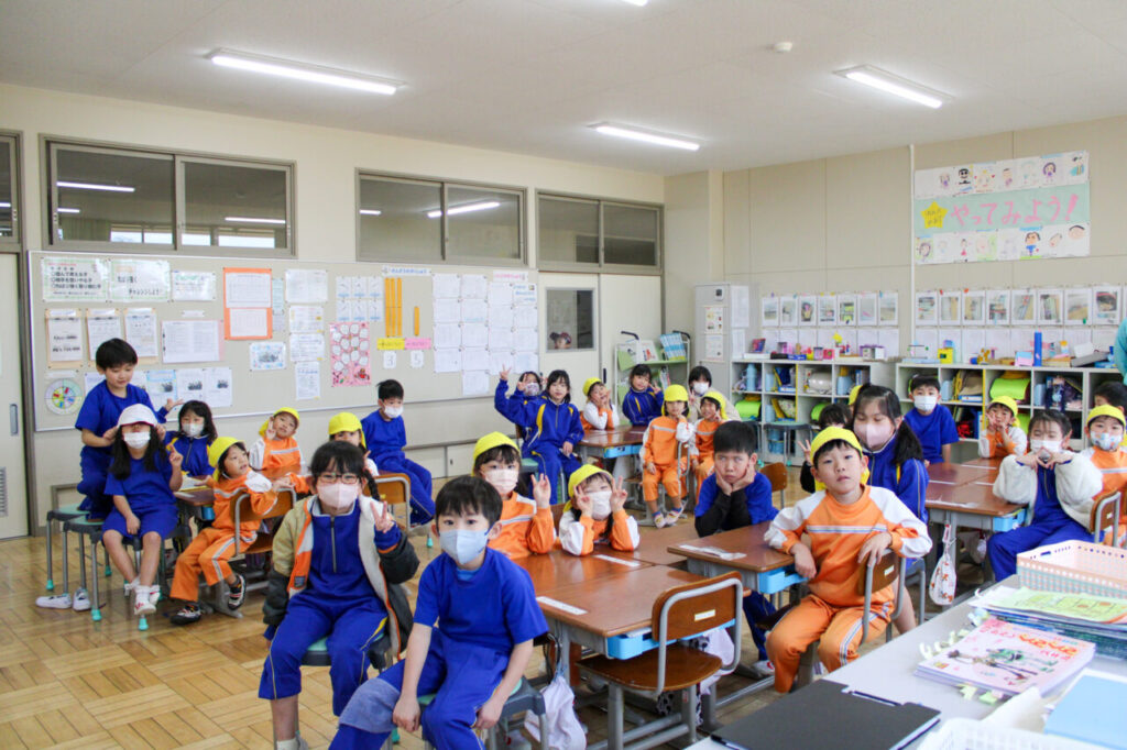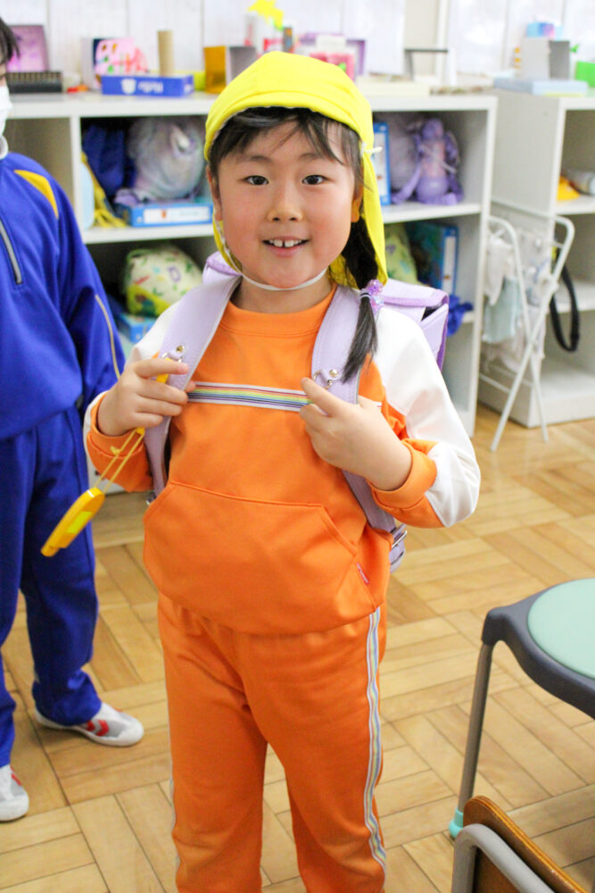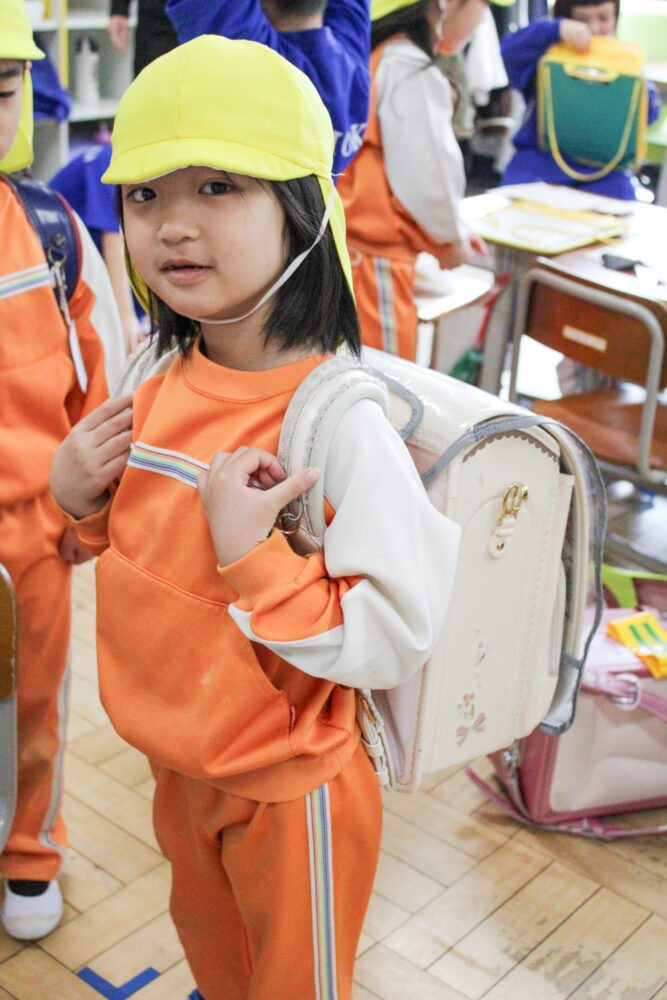 また、ランドセルを背負う体験もさせてもらい、「重いけど可愛い」「僕のは青なんだよ」と誇らしげな表情を見せていました。 優しく案内してくれた1年生との交流を通して、小学校への親しみが増し、「学校に行くのが楽しみ」と期待を膨らませる子どもたちでした。