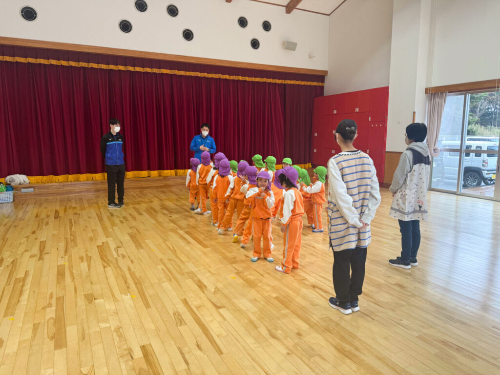 次は大きな輪になり、合図を聞いて前、後ろ、右、左にジャンプ!難しそうな動きでしたが、子どもたちは上手に出来ていました。