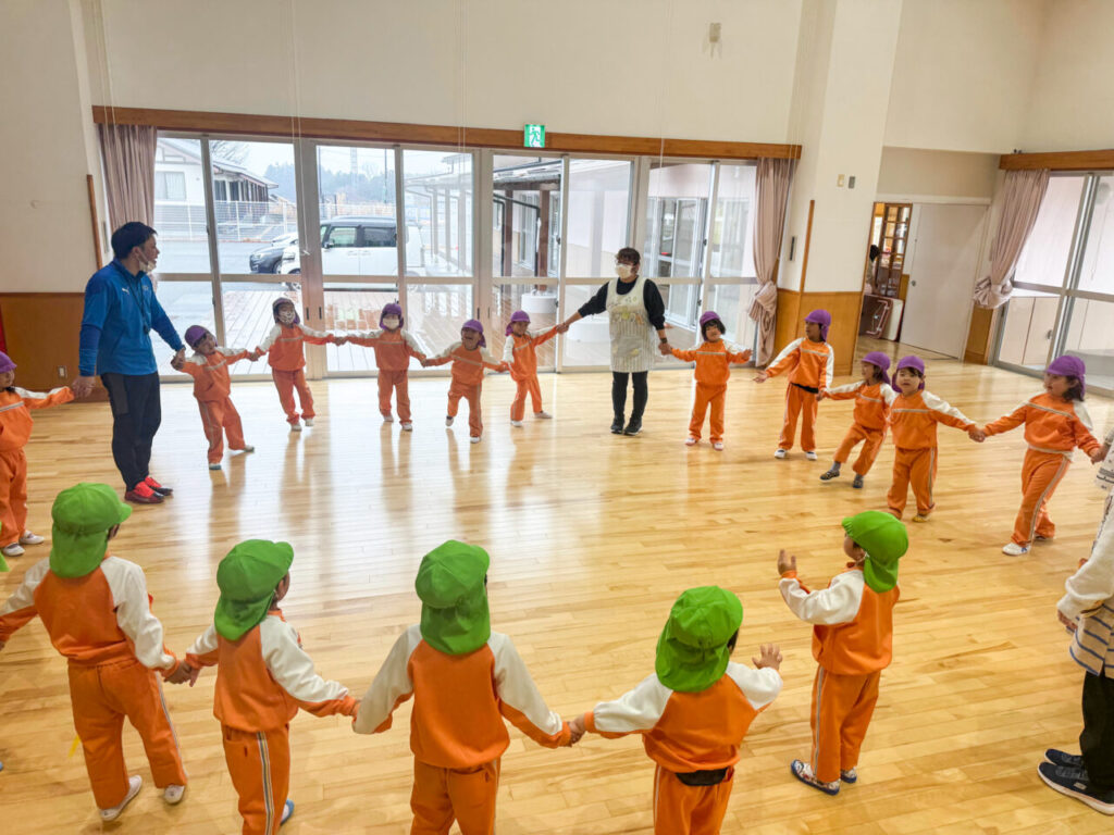 2月26日(木)は、もも組(4歳児)、ひまわり組(5歳児)の子どもたちが今年度最後のさくらスポーツで楽しく体を動かして遊びました。