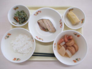 ごはん 鶏肉の照り焼き 千草和え みそ汁 フルーツゼリー