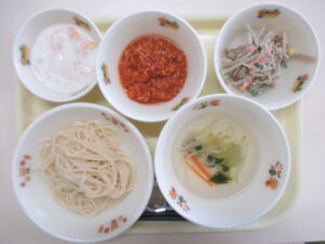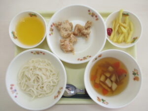 たんぽぽぐみリクエストメニュー けんちんうどん から揚げ フライドポテト フルーツゼリー